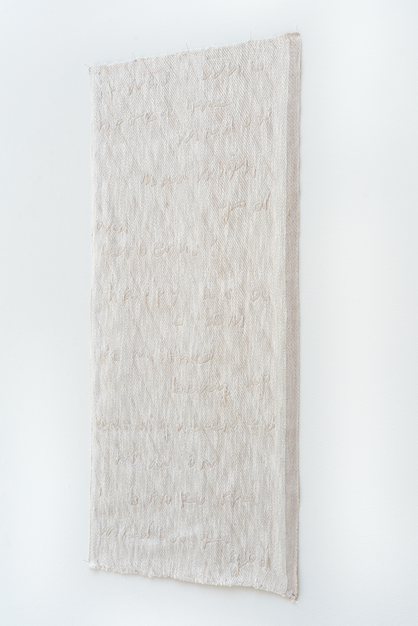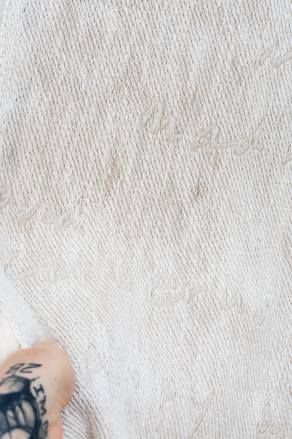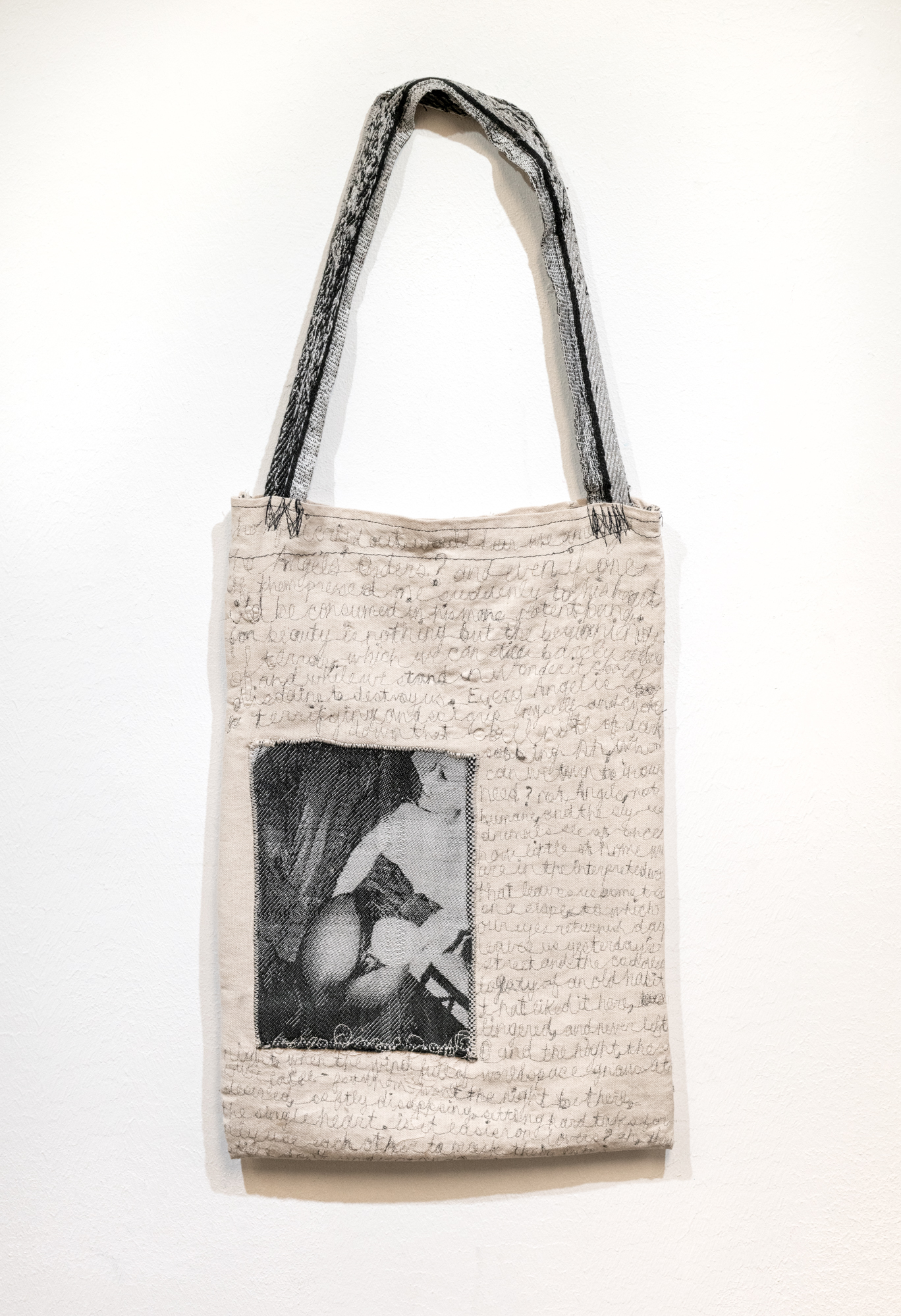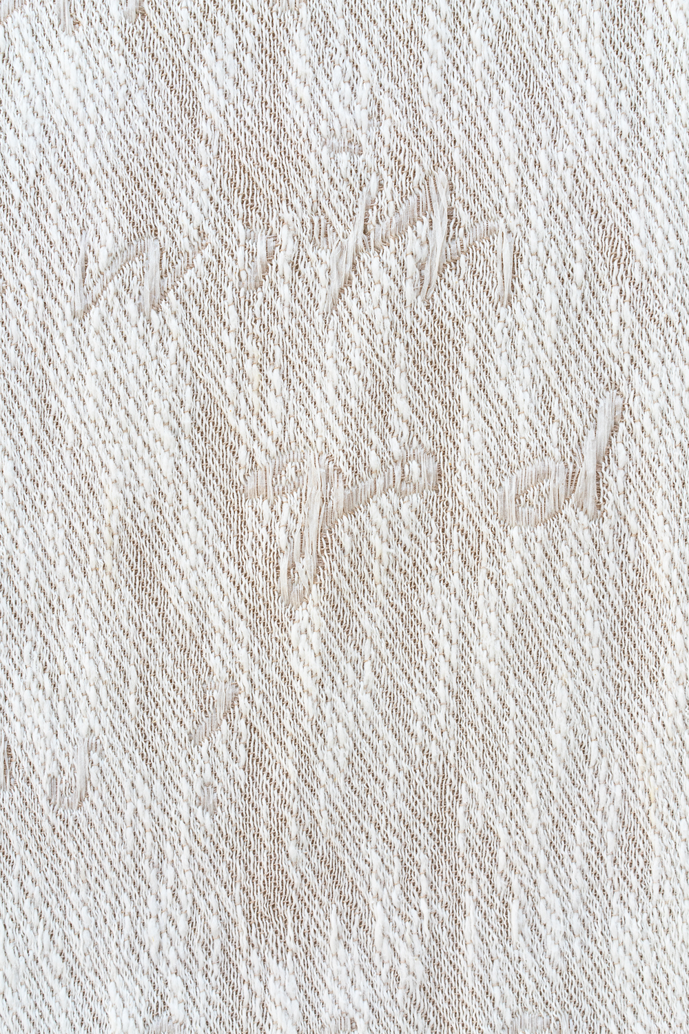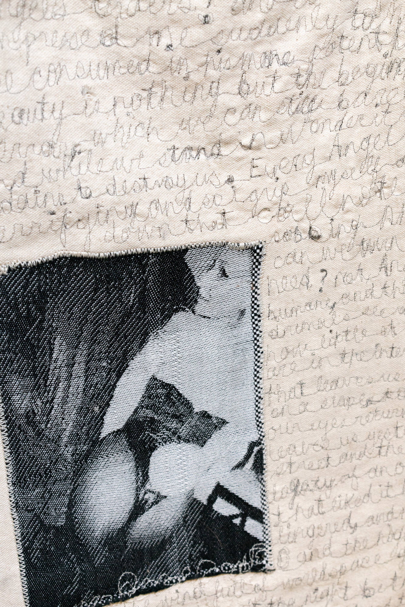 eighty hours spent hand weaving, unweaving, and beading in an attempt to translate the temporal disintegration of a silver gelatin photograph to a textile