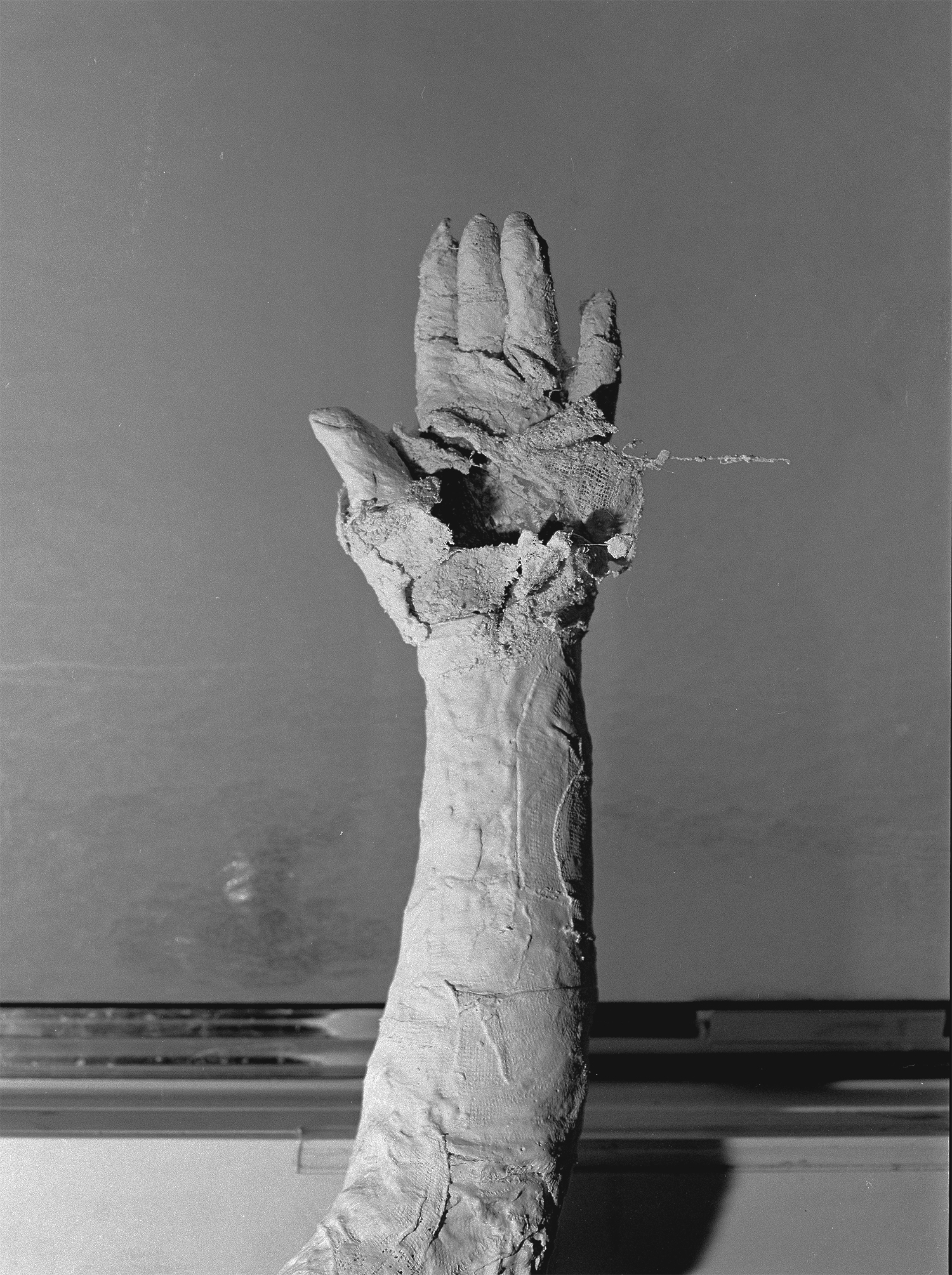 The Grotto delves into Greek mythos, studying various katabases (descents into the underworld) in order to explore how the ascent from the underworld can contort and change a body in the contemporary domestic realm. The photographs are printed on expired silver gelatin paper from the US and the USSR, my two native cultures. Life-casted plaster sculptures, sometimes finished with a silver nitrate “skin” become shells that are shed after moments of bigness. This series explores creatures that don’t fully exist in the natural or supernatural worlds: possessed bodies that are affected by the madness of the grotto and inhabited by some kind of magic that only exists between worlds. The hints of the underworld and of our unconscious that seep into the domestic realm show that the body, the spirit, our memory, and identity are not fixed.